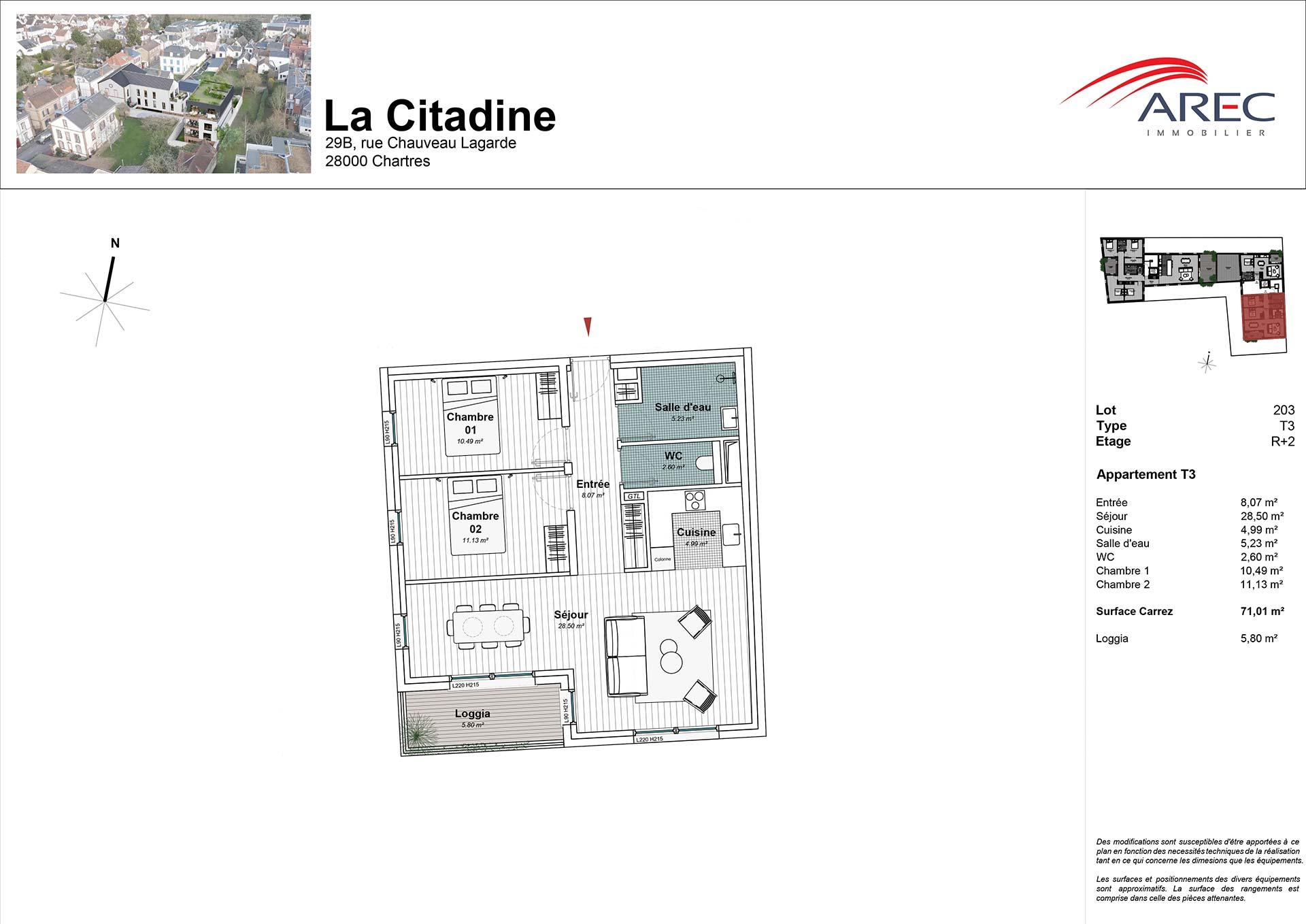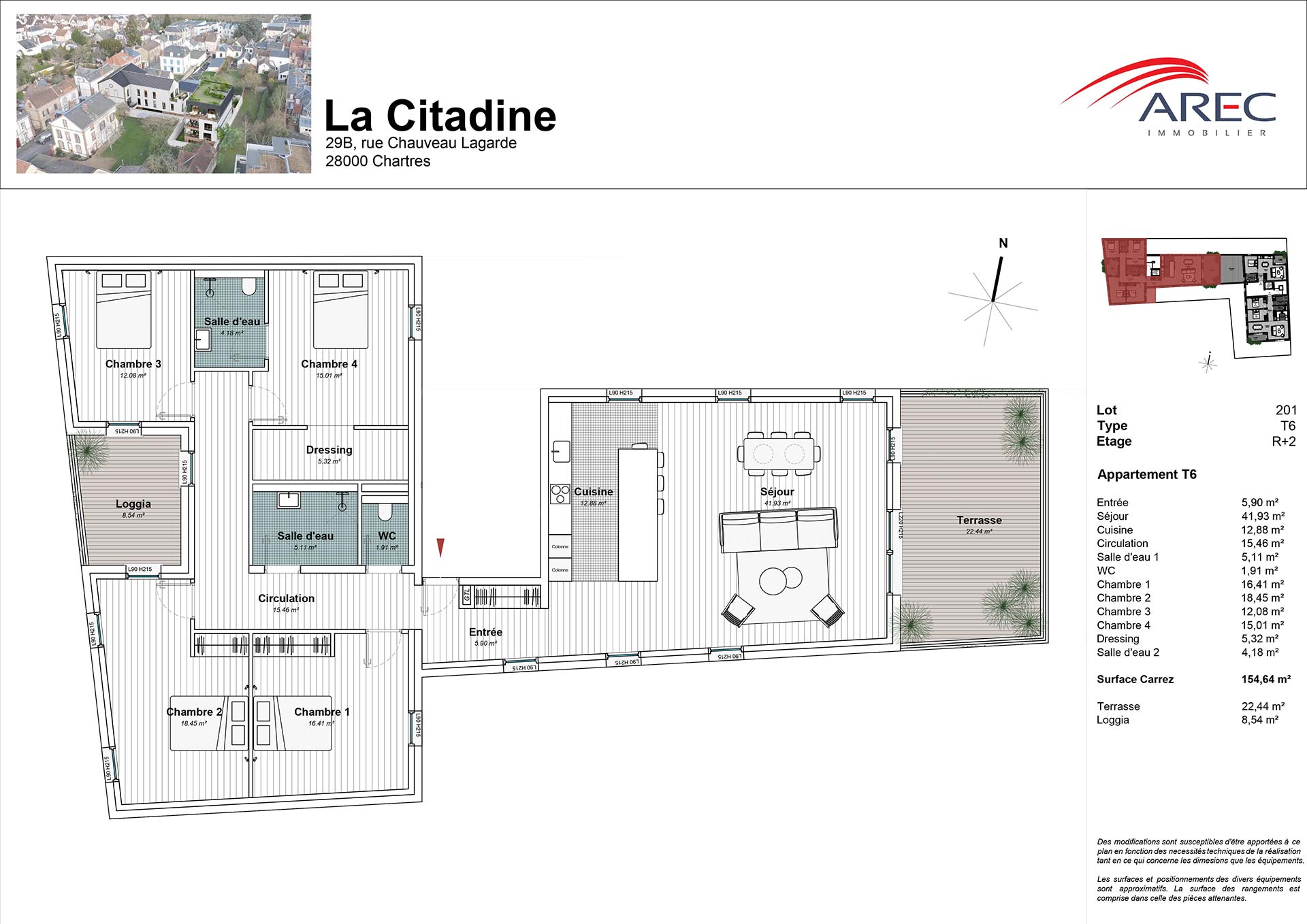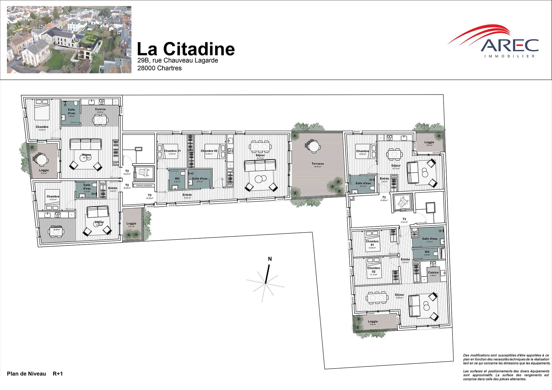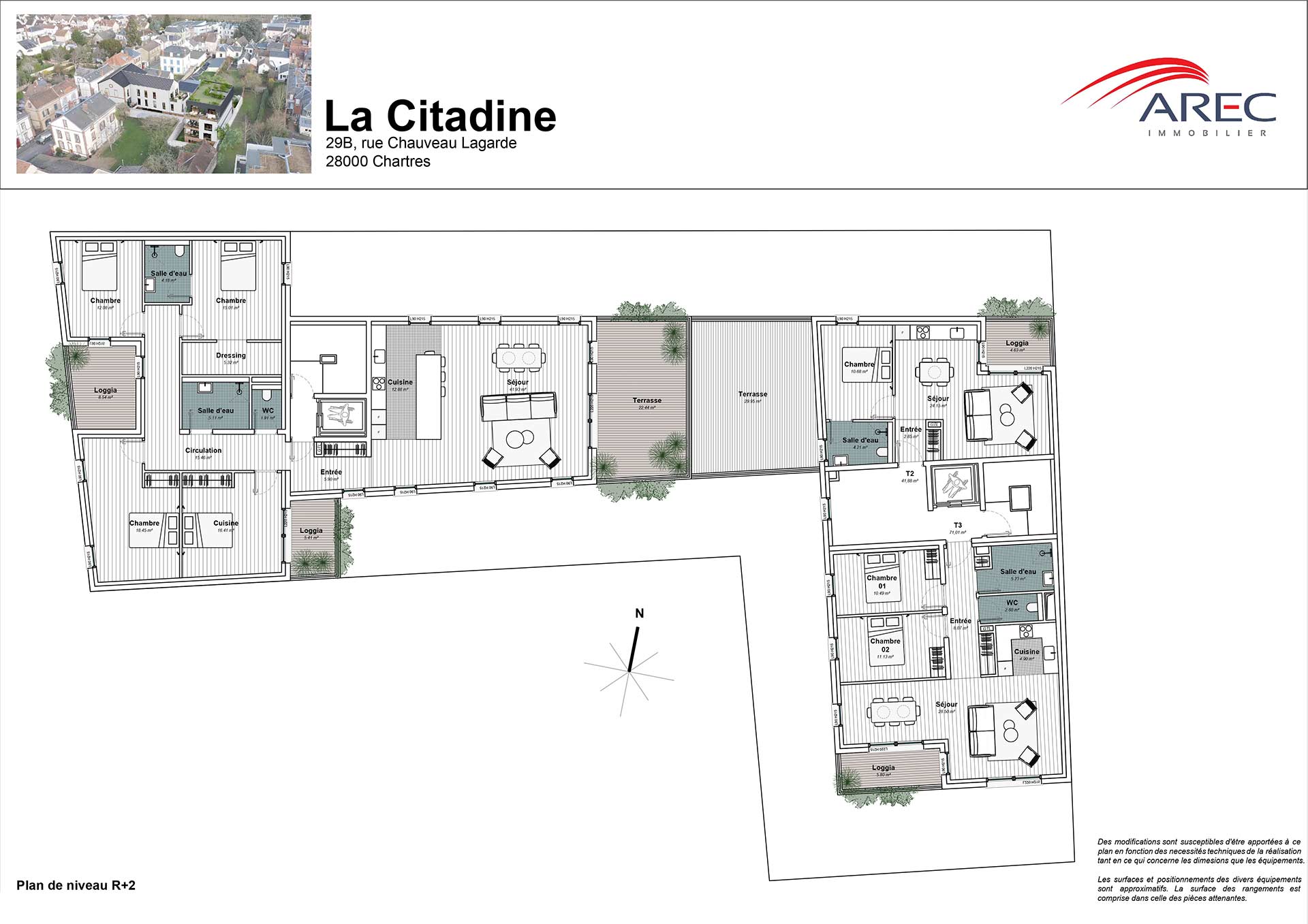 Terrasse 22 m² - 2 Loggia de 8m² et 5m² - 2 Places de parking